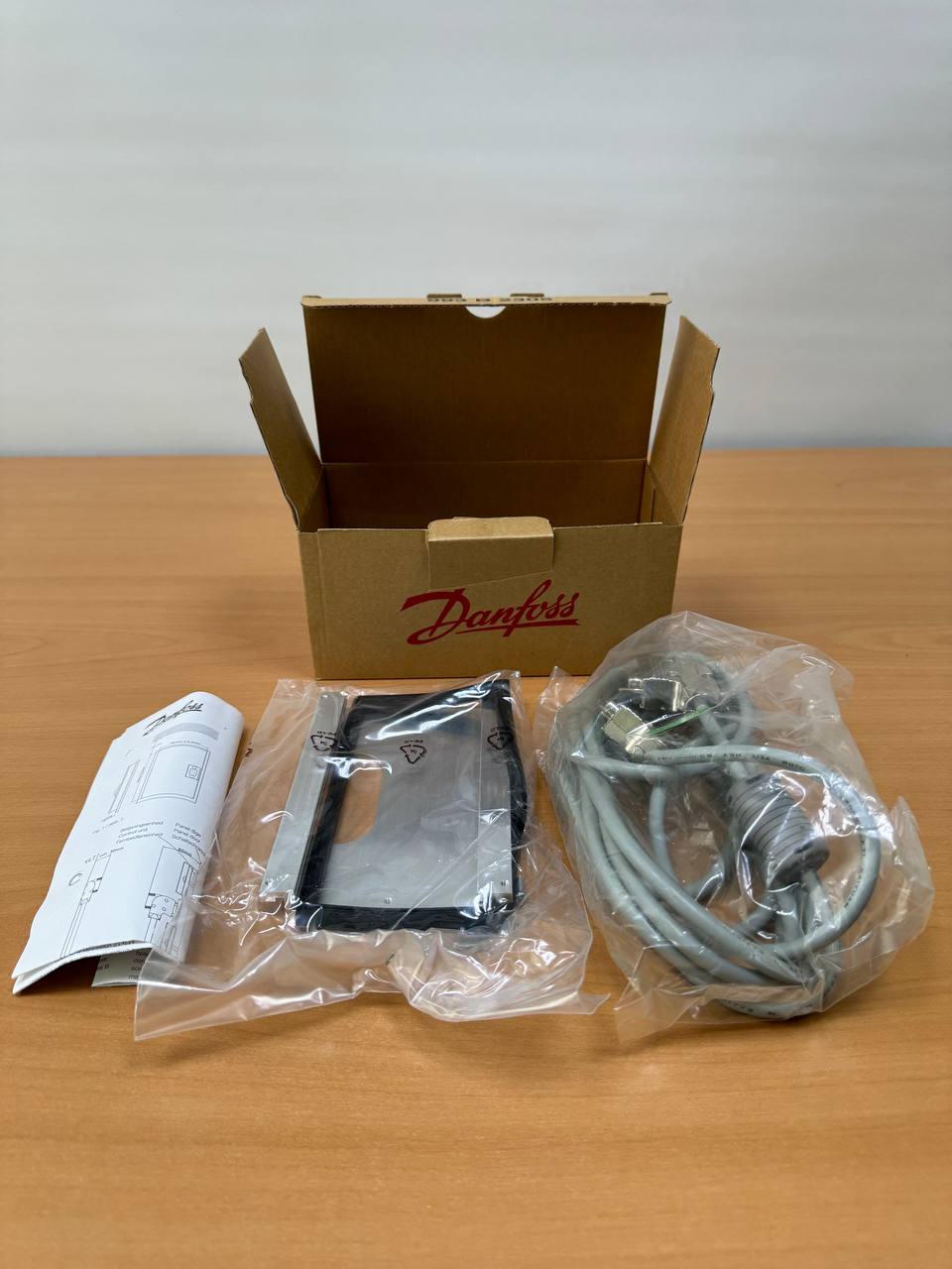 Это комплект для удалённого монтажа панели управления LCP (версии 2 или 3) для приводов VLT. Включает все необходимые компоненты для установки панели в удобном месте, отличном от корпуса привода. Продукт сейчас снят с производства, но у многих реселлеров ещё есть остатки со склада.